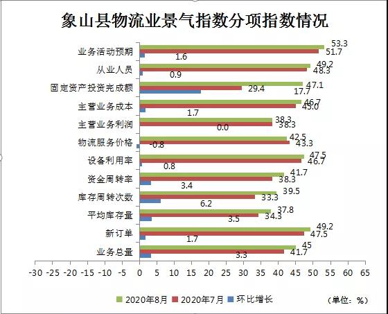 2020年8月份象山县物流业景气指数(LPI)为44.8,全县物流景气指数较上月上升3.3个百分点,物流行业景气指数有待进一步巩固、提高。