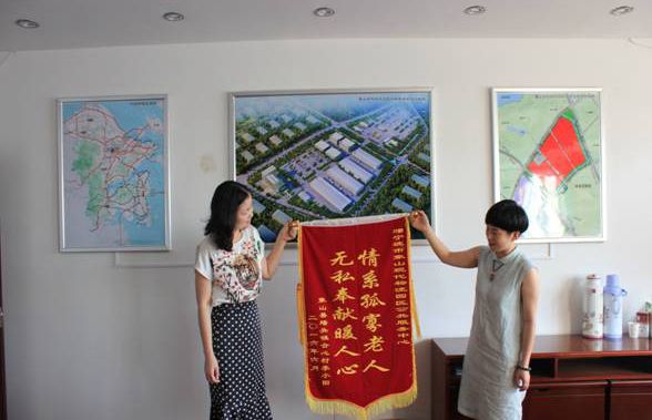 在宁波市物流园区公共服务中心与李小田老人结对以来,老人几乎年年都会亲手书写感谢信寄到单位。老人的外甥女说,近几年由于老人的视力状况不好,已无法亲手写感谢信,但他一直惦念着公共服务中心他的好,故今日特地嘱托他们夫妻为物流园区送上锦旗,以表谢意。