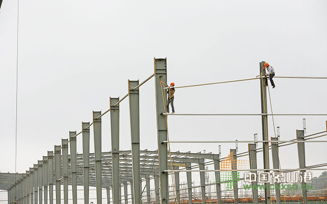 日前,象山现代物流园区公共服务中心钢结构仓库进入安装阶段。